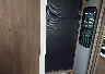 ENTRY STEPS PUSHED BEHIND DOOR FRAME AND WILL NOT COME OUT. TRIED BUT COULD ONLY GET ONE SIDE OUT DID NOT OPEN SLIDE OF FOR SAFETY CONCERD AND DID NOT WANT TO CAUSE FURTHER DAMAGE